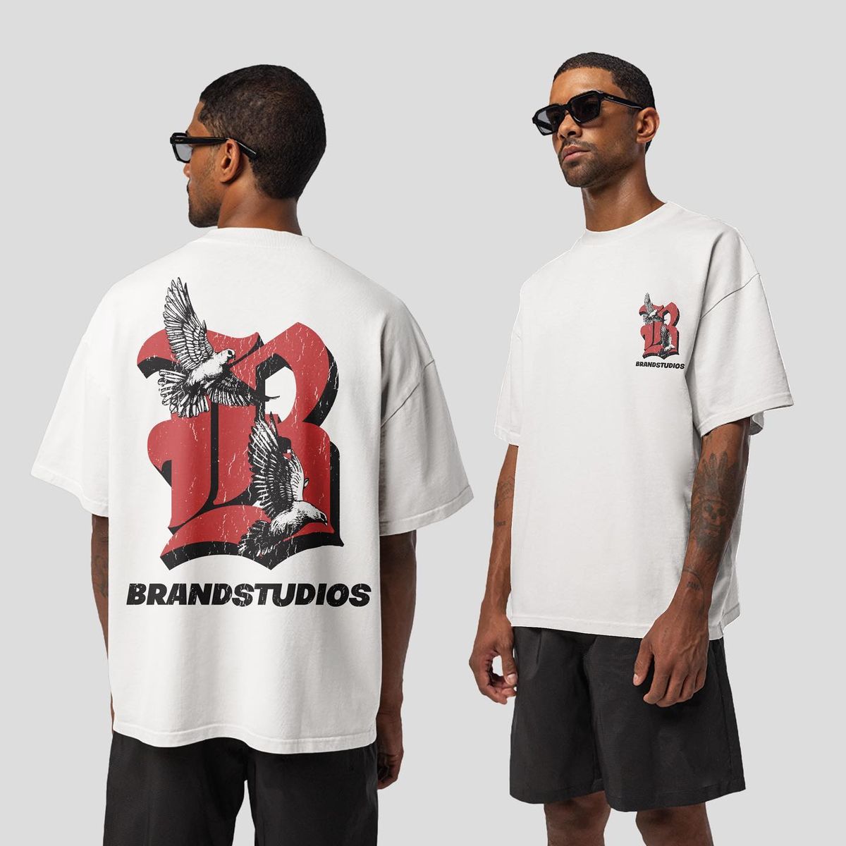 Make a statement with the Brandstudios Eagle Graphic Oversized T-Shirt, designed for those who prefer bold visuals and relaxed fits. Crafted in a premium white fabric, this tee features a minimal front logo and a powerful eagle graphic with oversized typography at the back.